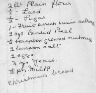 Cooking temperatures aren't mentioned and times only occasionally. I guess that this was because she knew by experience what temperature her fire oven needed to be. Its also interesting to see the quantities, Christmas Bread with 2 pounds of flour, a half a pound of lard and a pound of fruit is quite a cake.