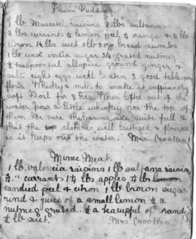 These two recipes seem to have come from Mrs Crookes and aren't the recipes which were passed on by Gran
